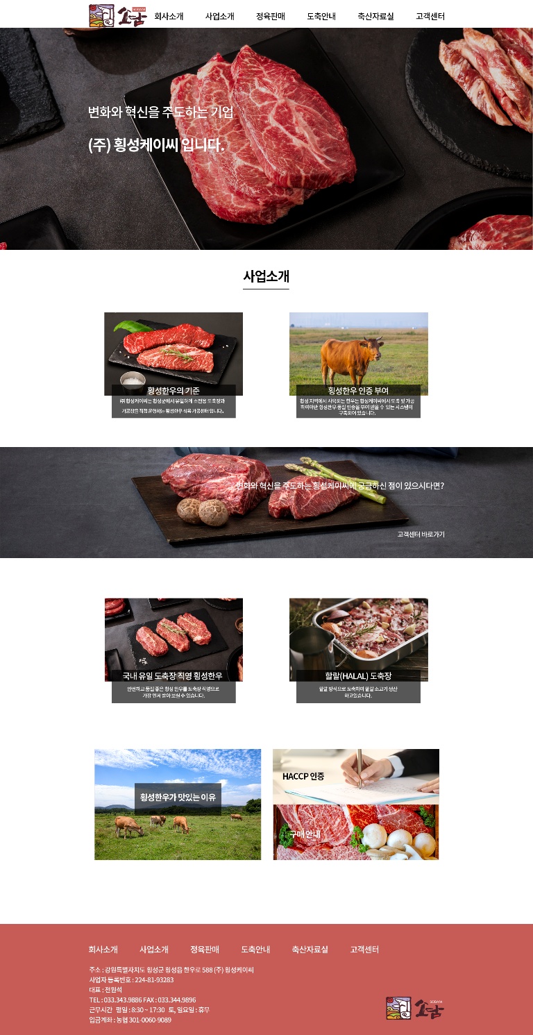 [반응형 회사홈페이지] 한우 도축 가공 및 직영판매 전문기업 기업 주식회사 횡성케이씨